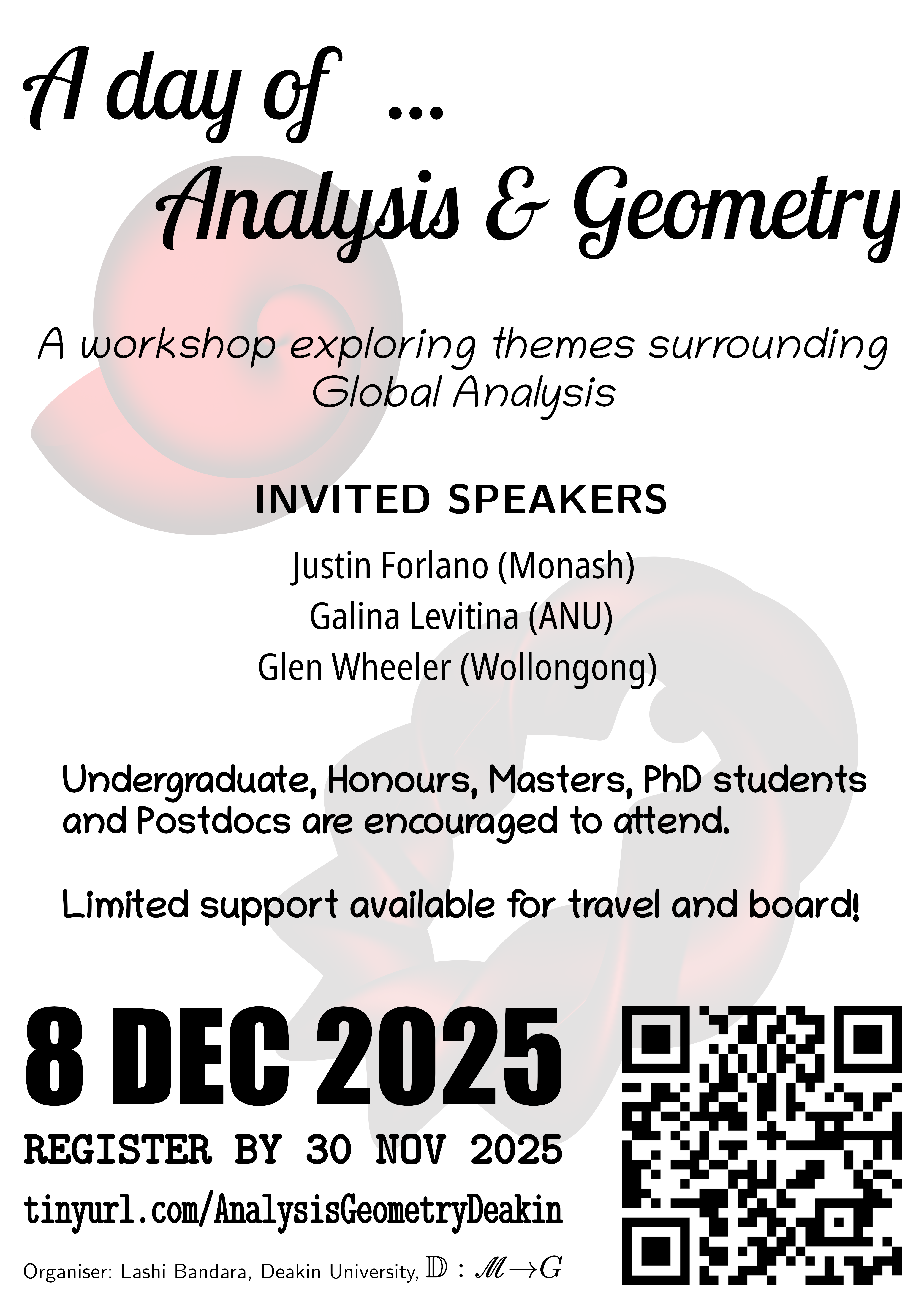 Limited support available for travel and accommodation, please email lashi.bandara@deakin.edu.au with subject "AGD Support" to apply